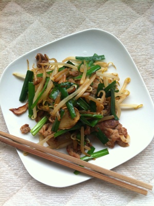 野菜炒めは豚、もやし、韮に塩胡椒というシンプルなものですが